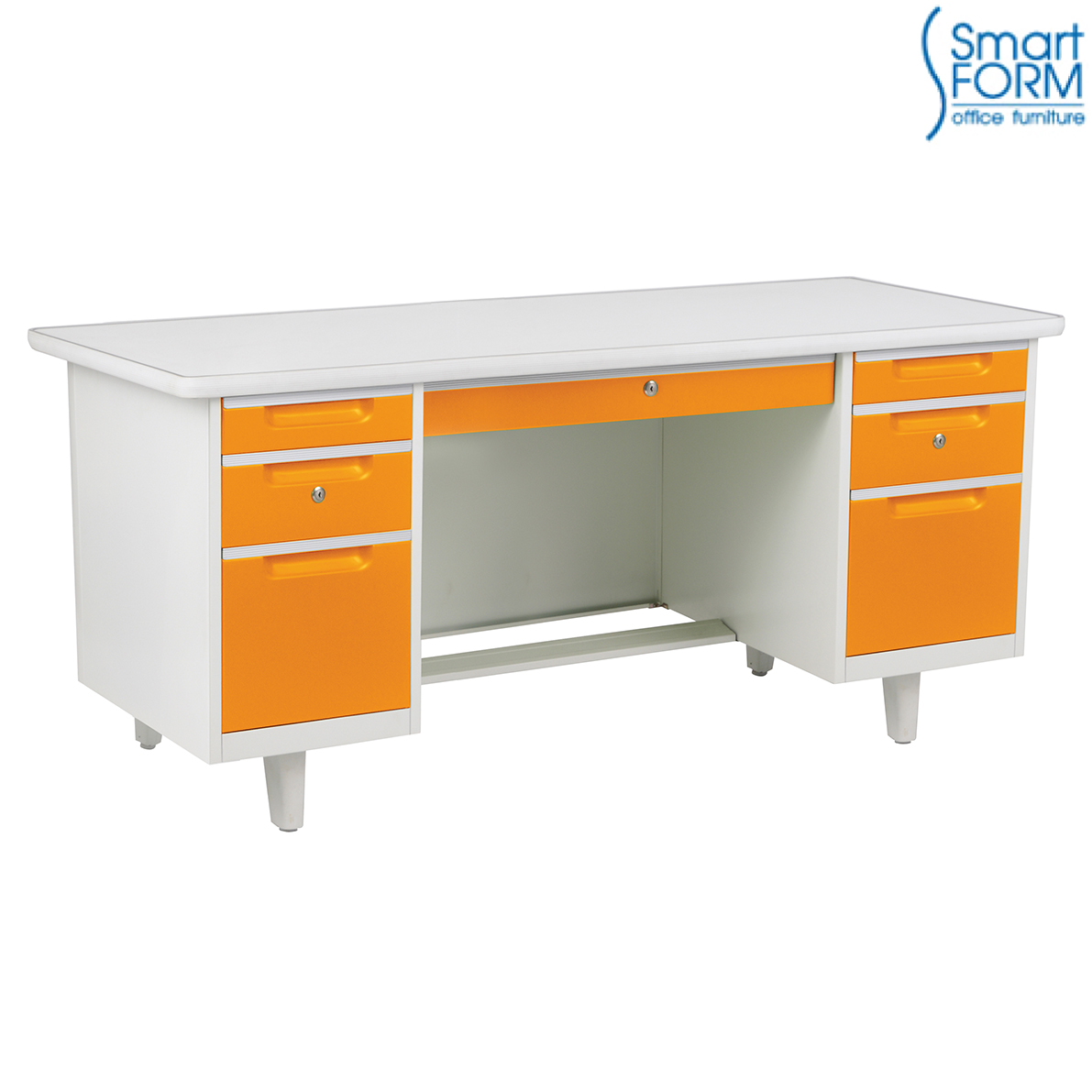 หน้าโต๊ะทำด้วยเหล็กแผ่นพับขึ้นรูปพ่นสี เสริมโครงเหล็ก ปิด...