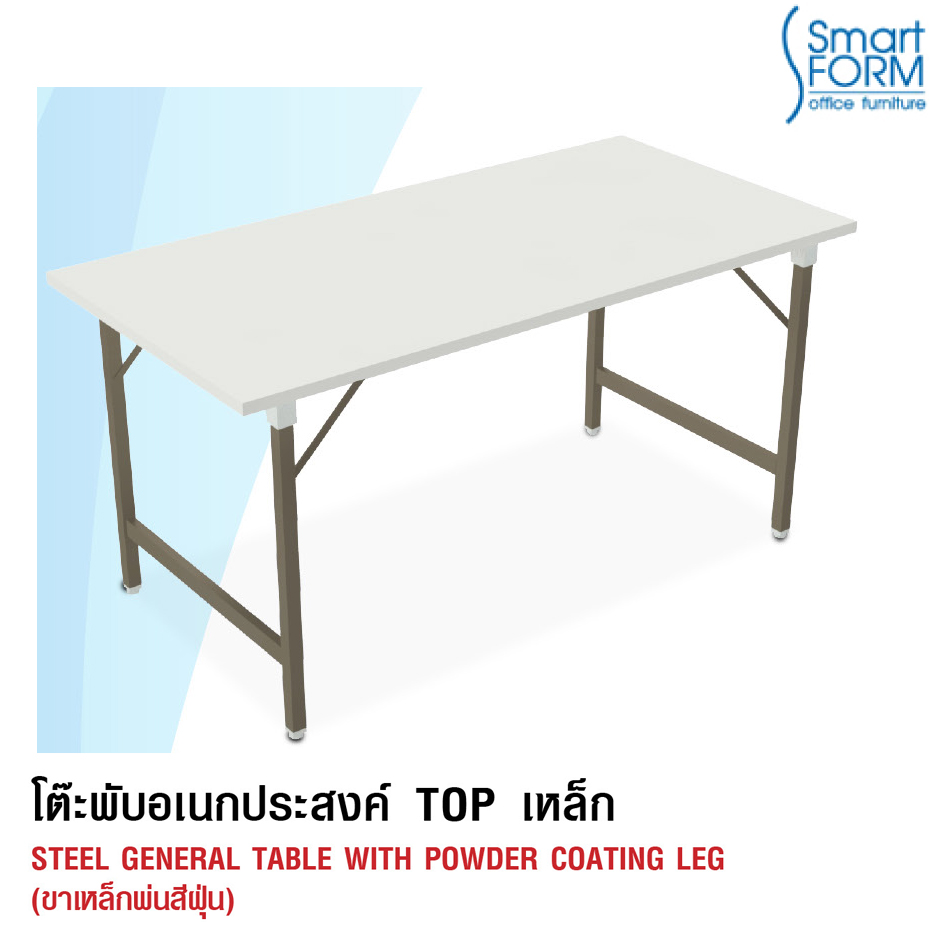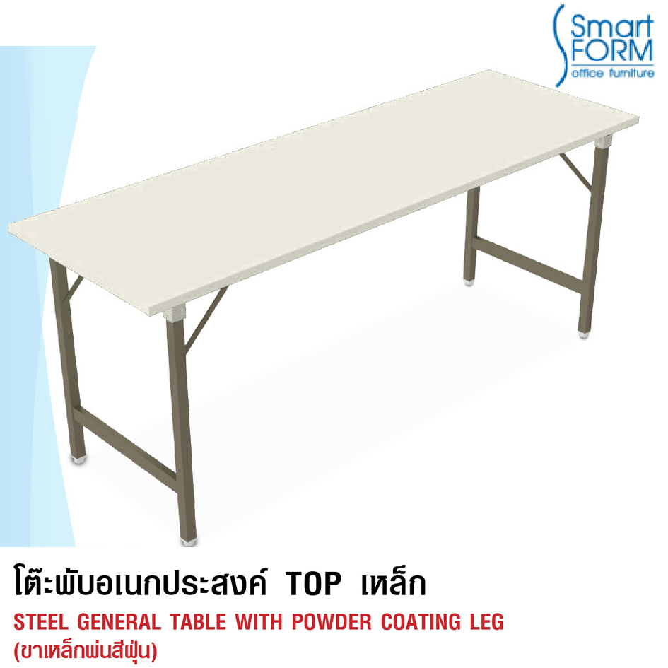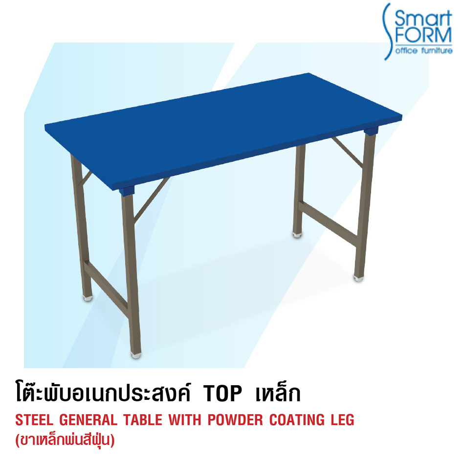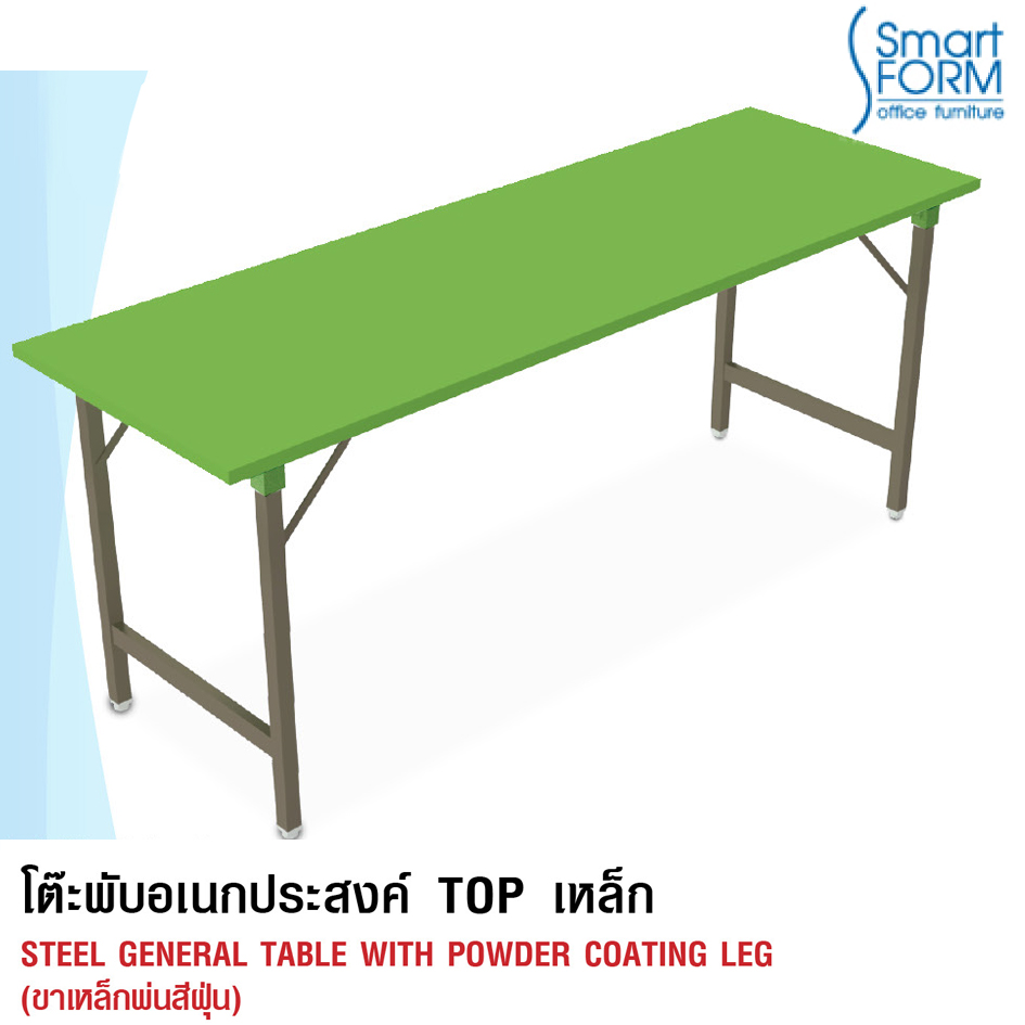 หน้าโต๊ะทำจากเหล็กหนา 0.6 mm. พับขึ้นรูป และเสริมคว...