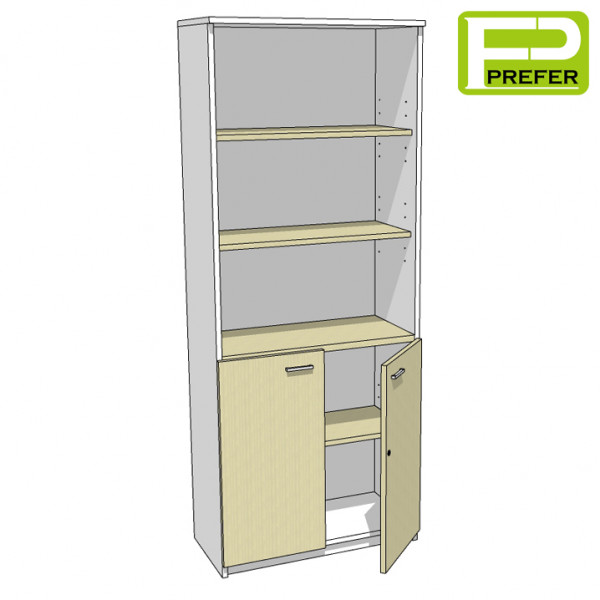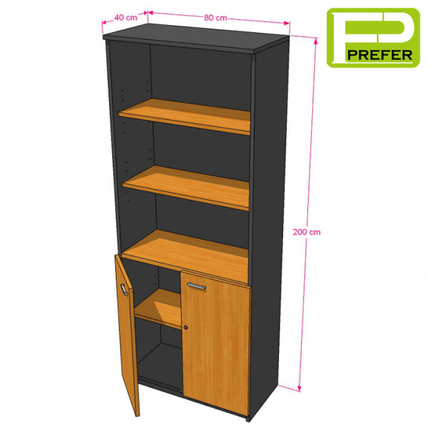 - ด้านล่างเป็นบานเปิดทึบ ทำด้วยไม้พาร์ทิเคิลบอร์ด ปิดผิวด้วยเมลามีน หนา 16 mm. มีมือจับ และกุญแจล็อค