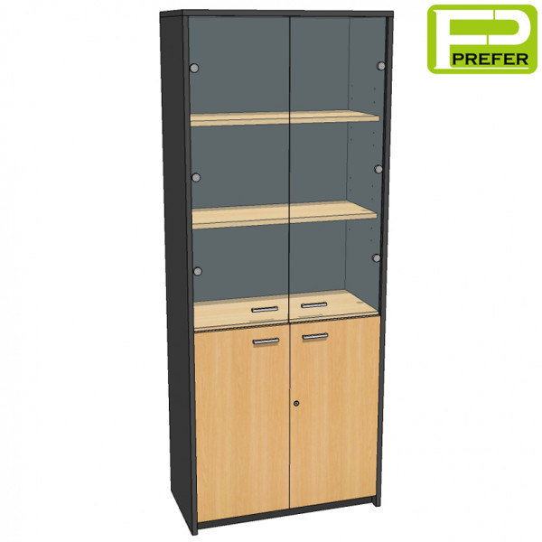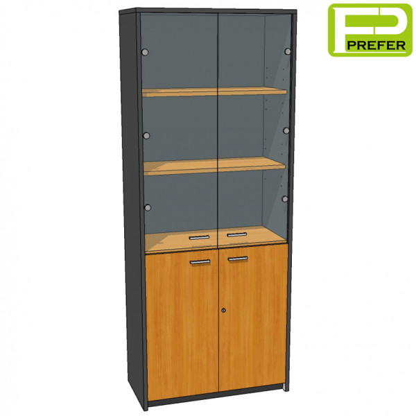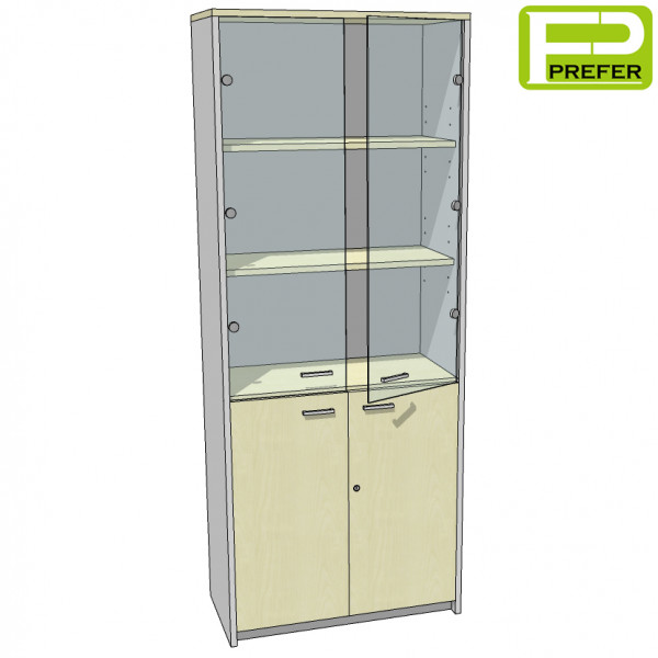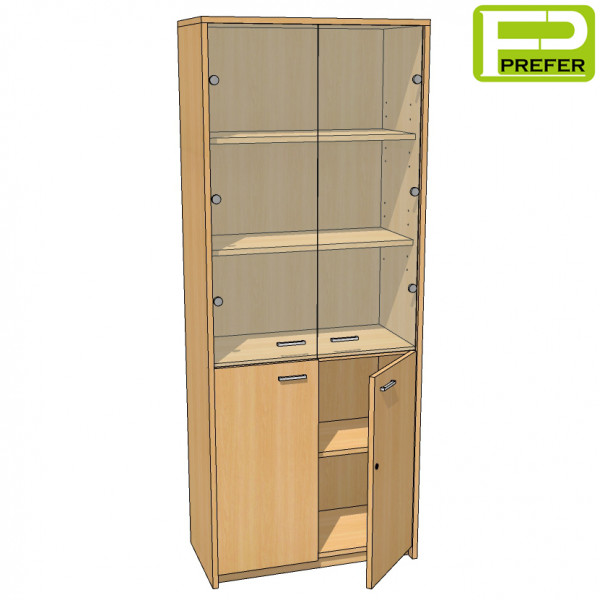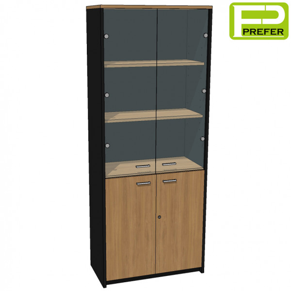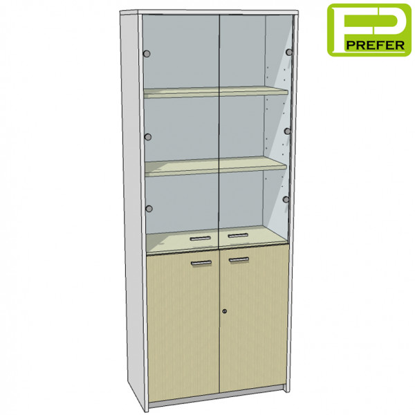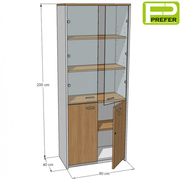- ด้านล่างเป็นบานเปิดทึบ ทำด้วยไม้พาร์ทิเคิลบอร์ด ปิดผิวด้วยเมลามีน หนา 16 mm. มีมือจับ และกุญแจล็อค