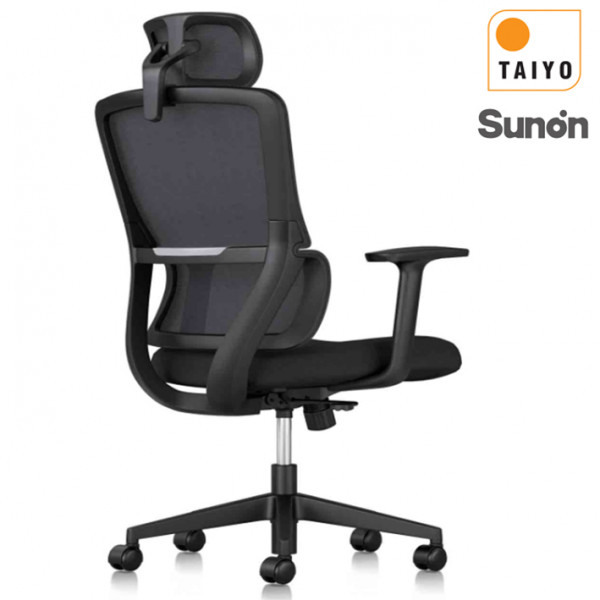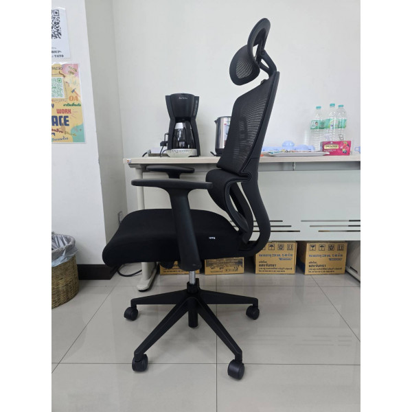 - มีพนักพิงศีรษะ หุ้มด้วยผ้าตาข่าย (ผ้าเมสสีดำ)