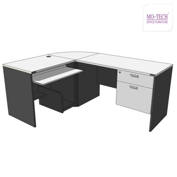 - มีลิ้นชักวางคีย์บอร์ด รางลิ้นชักใช้รางเลื่อนชนิดลูกปืน เลื่อนเข้าออกได้สะดวก ไม่หลุดราง