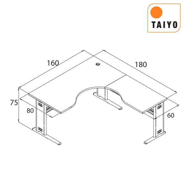 ขนาด กว้าง 160 x ลึกเฉพาะหน้าโต๊ะทำงาน 80 x ความลึกทั้งหมดรวมตัวแอล 180 x สูง 75 cm.